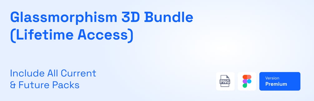 Get lifetime access to the complete Glassmorphism 3D ecosystem. Includes all current packs, future updates, and editable Figma source files.